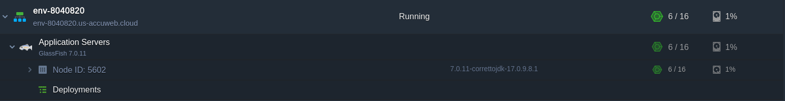 4. After a few minutes, your environment with the GlassFish server will be created and appear on the dashboard.