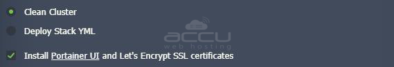 • Clean Cluster: Set up a minimal cluster configuration. Optionally, you can install the Portainer management U along with Let’s Encrypt SSL certificates for easier management of cluster nodes.