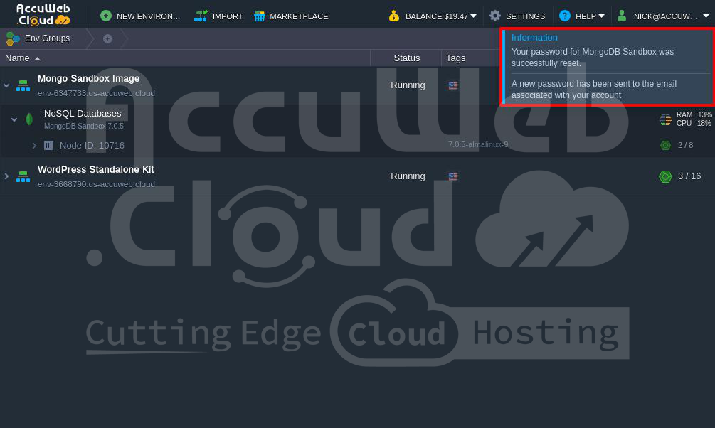 That’s it! You’ve successfully reset the MongoDB admin password from the AccuWeb.Cloud dashboard.