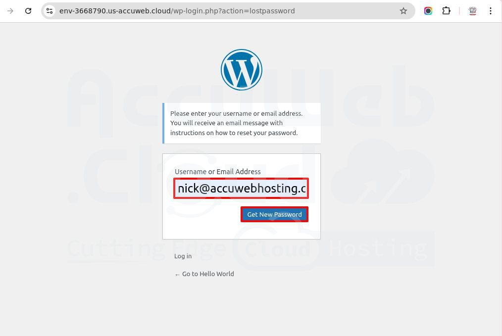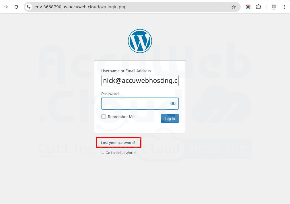 Follow these steps to reset the WordPress admin password in AccuWeb.Cloud:
