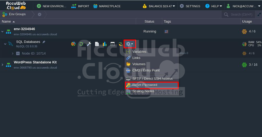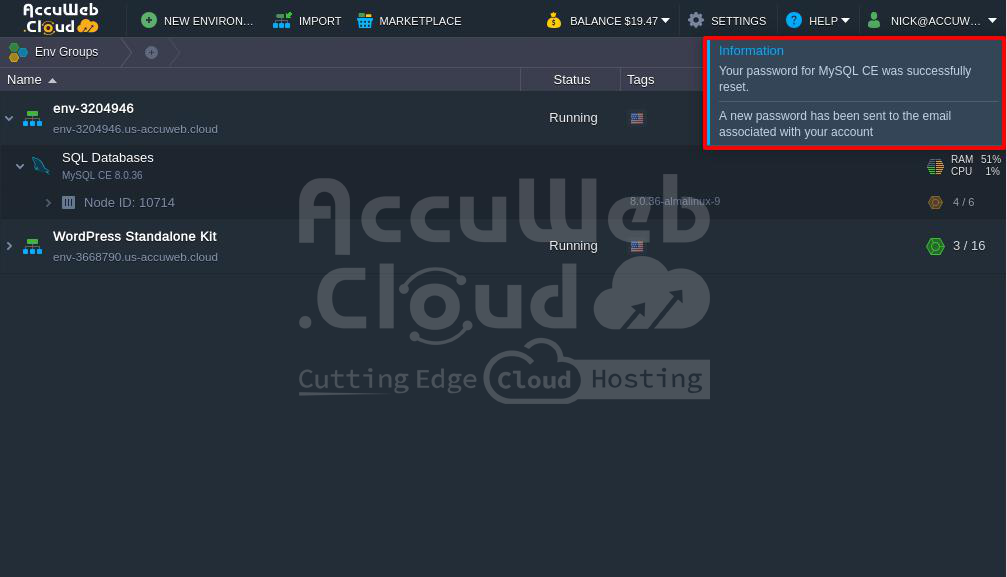 Case 2: Resetting MySQL Database Password in AccuWeb.Cloud