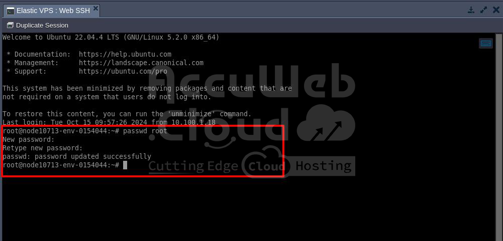 Congratulations! You have successfully reset the root password for your Elastic VPS from the AccuWeb.Cloud dashboard.